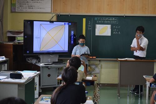 はじめは「どうすれば求められるのだろう?」とみんな考え込んでいましたが、自分でじっくり考えたり、友達と話し合ったりすることで、面積の求め方を見つけることができました。課題が解決できて、とてもすっきりした顔になっていました。
