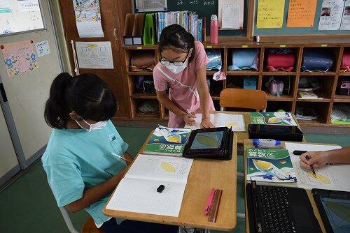 2年生は算数の学習でした。タブレットを用いて正しく計算できるように練習することができました。おうちの人も見てくれています。