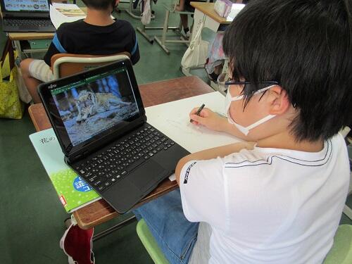 4年生は、感想画の下書きを描いていました。描きたいものをネットで検索して、描く時の参考にしていました。