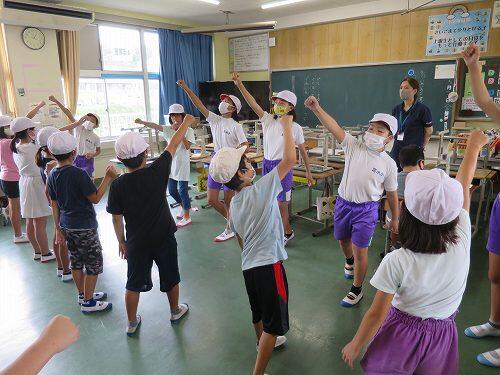 子どもたちもよく耳にしている曲で、走った後でしたが疲れも見せずにノリノリで踊っていました。楽しそうです。