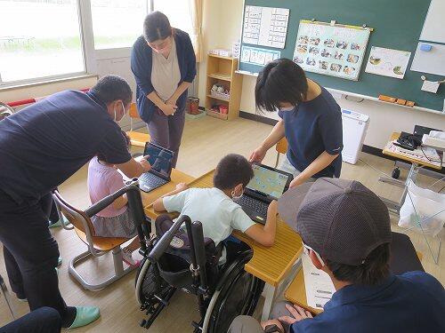 たんぽぽ学級では、オンライン学習で使えるソフト(チームズ)の使い方を保護者と一緒に練習しました。その後、タブレットでできる勉強をしました。