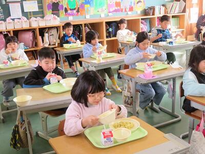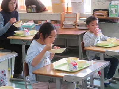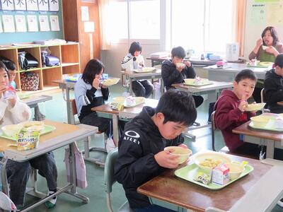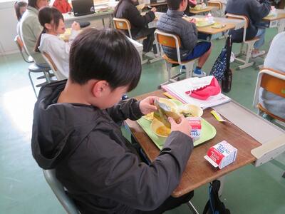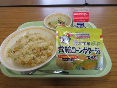 1月13日(火)の給食に非常食が出されました。今回は、「救給コーンポタージュ」です。災害時にも安定した給食を提供するための献立の一つです。本校栄養教諭が、「災害時の非常食の味にも慣れておいてほしい」という思いで提供しました。今回のコーンポタージュの味について子どもたちは、「おいしい。」と言う感想でした。6年生は、「味はおいしいけれど、量がもっとあるとうれしい。」と言っていました。災害は、いつ起こるか分かりません。その場合の「食」はとても大切です。これからも、災害に対する様々な備えが必要です。