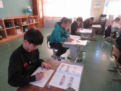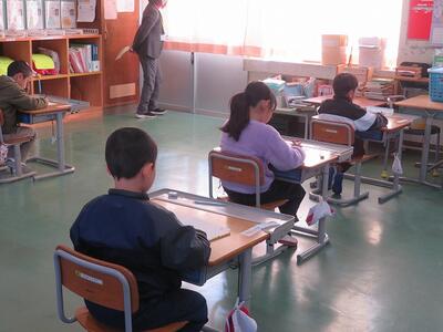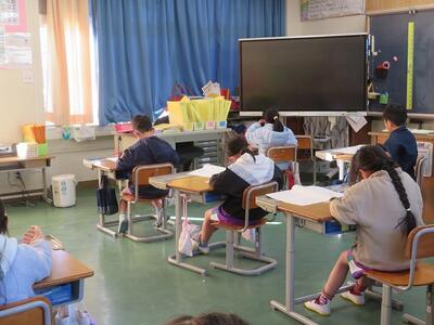 6年生が英検に挑戦しました。英検の内容は、リスニングの問題も多く、CDから流れてくる質問を懸命に聞き分けながら問題に挑んでいました。例えば、絵が示してあり、その絵に対して英語で質問され、質問に対する正しい答えを聞きながら3つの選択肢から探すといったものがありました。文字が全く示されておらず、リスニングのみでの解答方法でした。しかも、解答方法はマークシート方式でした。聞く力や単語力が備わっていないと正解に結びつくのが難しそうでした。これからの時代に求められる英語力。本校にはALTも常駐しているため、子どもたちとの日常の関わりを密にし、英語力の向上に努めたいと改めて考える時間でした。