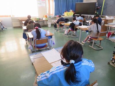 1月14日(水)から15日(木)にかけて「ひのかげ学力調査」が行われました。1・2年生は、PBC(Paper Based Testing)という紙ベースのテスト形式で、3~6年生はCBT(Computer Based Testing)というコンピュータベースのテスト形式で行われました。2年生は、普段の単元テストと異なり、問題用紙と解答用紙が別形式であるため、回答欄を確かめながら丁寧に問題に挑んでいました。3~6年生は、聞き取り問題ではヘッドセットを活用しながらタブレットで回答していました。その他の問題にも、タブレットと向き合い、真剣に答えていました。これまでの学びがどのような結果として現れるでしょうか。楽しみです。