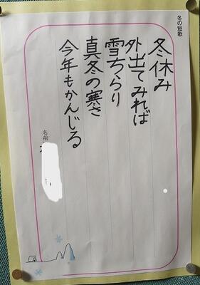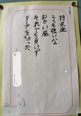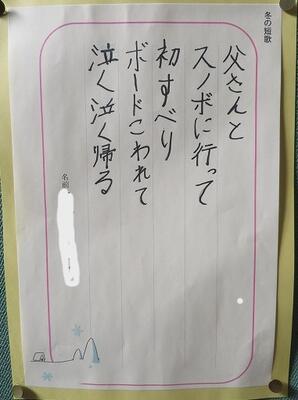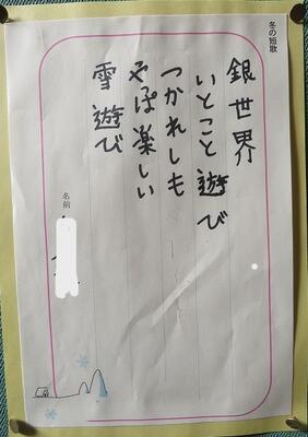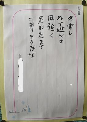 3学期に入り、3年生の子どもたちが短歌に挑戦しました。冬に関する短歌です。五七五七七のリズムで、冬休みのことや日常の場面について表現しました。一句一句をよんでみて感じたことがあります。子どもの感性の素晴らしさです。大人では表現できない様子を上手に詠んでいます。今回のように、言葉を厳選しながら短歌を楽しむことは、とても大切なことです。これからもたくさんの句を詠んで、語彙力や表現力を高めてほしいと願っています。※一部の作品を紹介いたします。