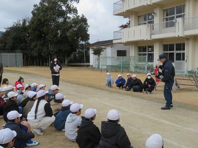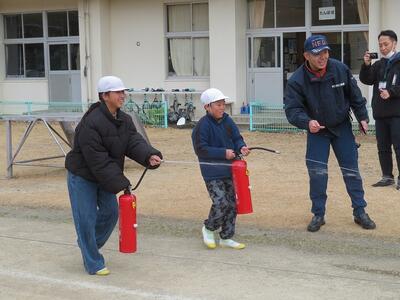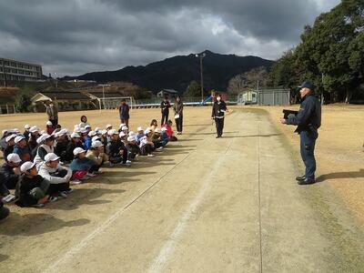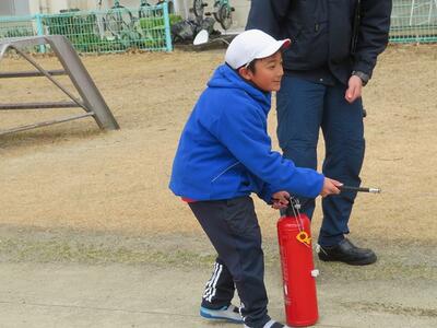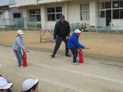 火災に関する避難訓練を実施しました。今回は、西臼杵広域行政事務組合消防本部から2名の方が来てくださり、避難の様子や消火器の使い方の指導をしてくださいました。避難訓練の際は、消防の方が見守る中、実際に非常ベルを押し、消防本部との電話でのやりとりをしながら避難をしました。児童が全員無事避難し、消防本部の方の話の後、消化器の使い方を教わりました。その後、代表児童が実際に水消化器を使いました。今回の避難訓練では、子どもたちもたくさんの学びがありましたが、私たち職員も非常ベルの押し方、消火栓による放水の手順、防火シャッターの作動の方法等について消防本部の方から教わり、実践的な学びとなりました。今回の避難訓練で子どもたちも職員も危機意識が高まりました。今後、事前予告なしの避難訓練も計画しています。