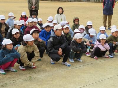 2年生が、生活科の時間にたこ上げに挑戦しました。2学期の終わりに作成していたたこを、この時期に合わせて上げました。この日は、朝の気温がマイナスでとても寒い日でした。運動場に出てみると、太陽の日差しがたくさんあり、たこ上げにちょうどよい風が吹いていました。2年生の子どもたちは、運動場に出るやいなや走り始めました。それと同時に、たこが次々に青空に!予想以上の上がり方に、子どもたちは大喜び。友達と併走しながらたこ上げをする子どもたちもいました。最近はあまり見かけなくなったたこ上げをする姿。今回の学習を機に、安全な場所でたこ上げにどんどんチャレンジしてほしいと思います。その中で、上手にたこを上げる方法を身に付けることができることを願っています。
