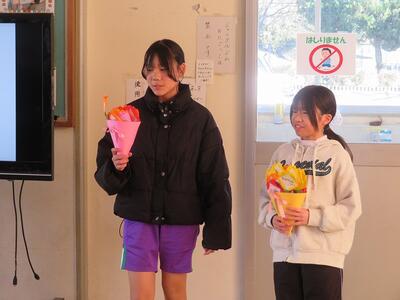 今回表彰していただいたことが、子どもたちの励みとなり、日之影町のよさをこれからも探究し、発信していくことで、最終的には、日之影を自慢できる子どもたちの育成につながれば幸いです。ご多用な中、表彰にお越しくださいました日之影町佐藤貢様をはじめ、関係機関の皆様方に感謝申し上げます。ありがとうございました。