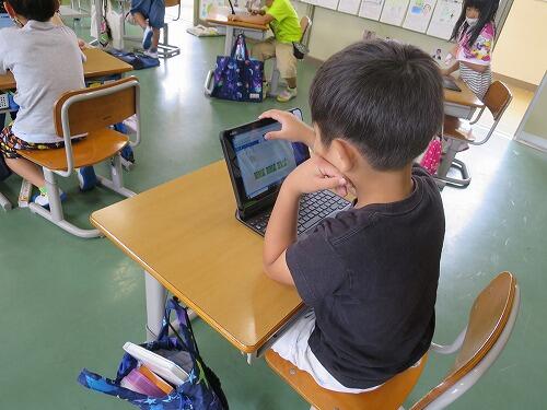 2年生はタブレットを使って、算数の計算問題に取り組んでいました。