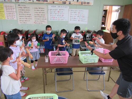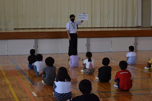 最後に、ポイントを意識してもう一回しました。ずいぶんと上手になりました。なお、朝の涼しい時間帯でしたので新型コロナウイルス感染症対策としてマスクをしておりますが、暑い場合は熱中症の心配もありますのでマスクを外させるなど、柔軟に対応しています。