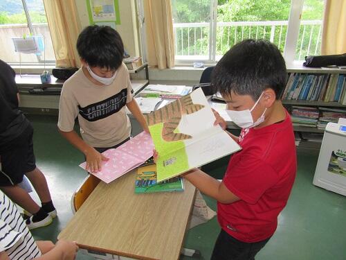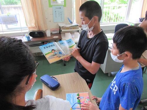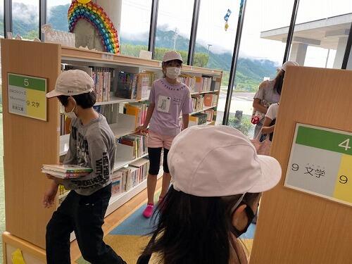 5年生が町図書館を利用して、国語の「作者でひろげる私たちの読書」に取り組んでいました。