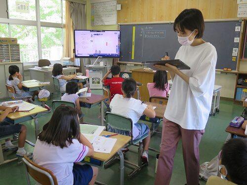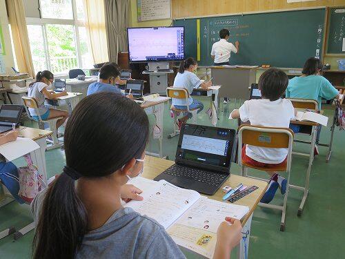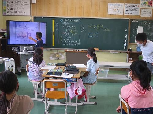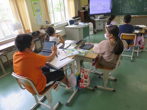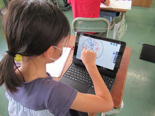 5年生は社会科の米の生産量の多い県の予想をタブレットに書き込んでいました。話合いが盛り上がりそうです。