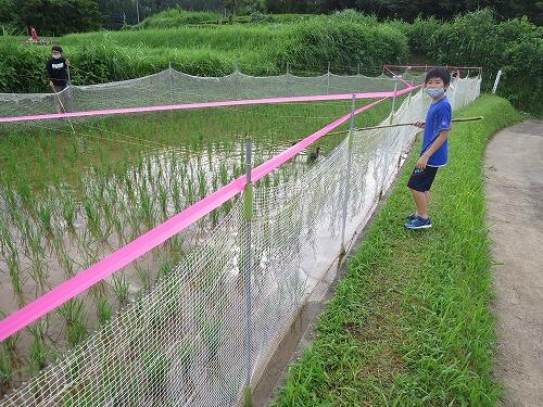 PTA環境整備部の皆さんを中心に、アイガモを放す田んぼの網はりと小屋作りをしました。あさっては放鳥の日です。楽しみですね。