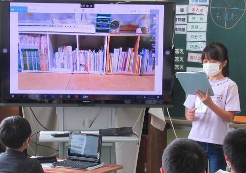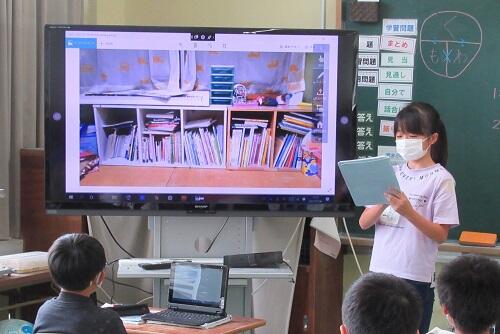 5年生の3・4校時は、家庭科でした。自宅で整理整頓した方が良い場所を決め、整理整頓をして、その前と後の様子をタブレットPCで撮影してくるのが課題でした。授業では、一人ずつ「どこを」「どのように」整理整頓したのか発表しました。発表後は、他の児童から感想やアドバイスなどをもらいました。