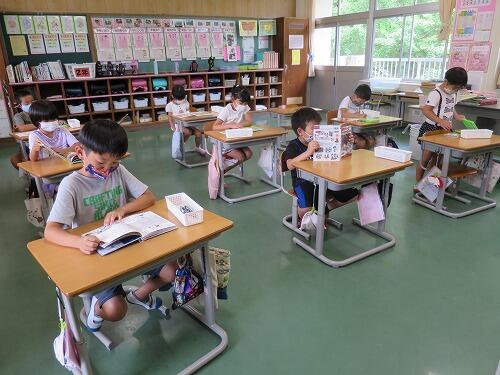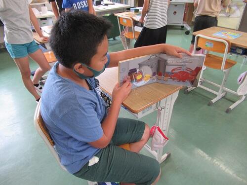 朝のモジュールの時間、高学年は、金曜日に行う「なかよし読み聞かせ」の練習をしました。「なかよし読み聞かせ」では、上学年生が下学年生に読み聞かせを行うものです。