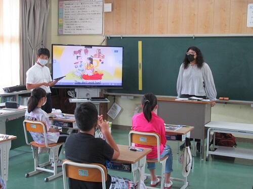 4校時、6年生は英語でした。七夕の物語をクリステン先生が英語で読み聞かせをしました。その中で、わざと間違ってその間違いを英語で正していく活動をしました。