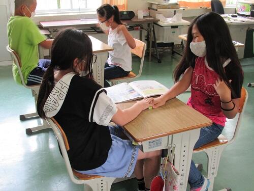 下学年生に分かるように読めているか、互いにアドバイスしたり、チェックしたりしました。これで、ばっちりです。自信をもって金曜日は臨めそうです。