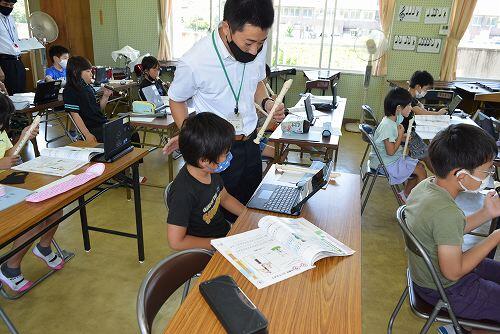 3年生は、音楽の時間にリコーダーの練習をしていました。