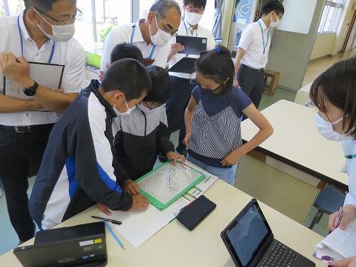 タブレットに自分の考えを書き込むことで、自分の考えをみんなに伝えることができていました。