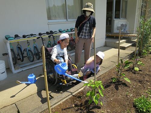 たんぽぽ学級では、野菜が大きくなっている様子を調べていました。