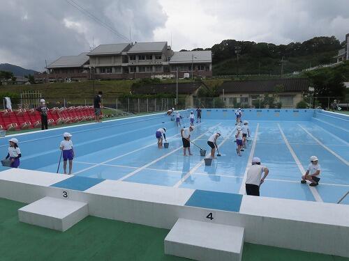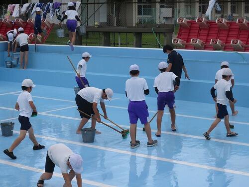 今日はプールそうじがありました。のぞみ工房の皆さんがそうじをしてくださっているので、最後の仕上げを子ども達がしました。プールの壁が鮮やかな青色で、とてもきれいでした。14日の週に各学年プール開きを行います。楽しみですね。