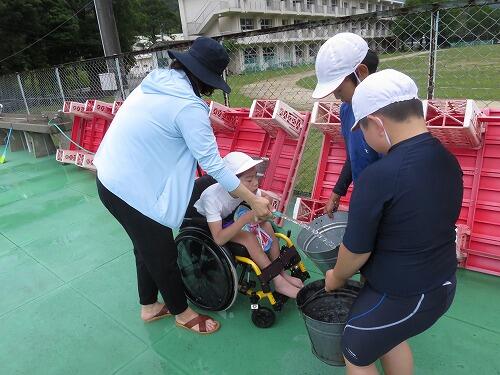 プールの中を歩いたり、泳いだりしてたくさん水と触れ合いました。