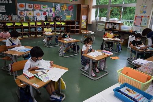 4・5年生は、国語の教科書の文章を、先生が読んだ後に全員で繰り返し大きな声で読んでいました。何度も何度も繰り返し徹底して読んでいました。