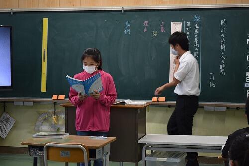 6年生は国語の時間に、「昼休みは長い方がよいか、短い方がよいか」というテーマでそれぞれの児童が自分の主張を発表していました。