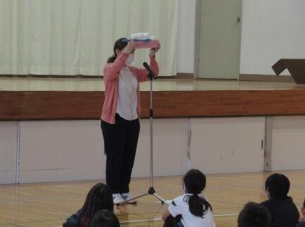 6月3日(木)の全校朝会で、養護教諭の福田先生の話がありました。6月の月目標「歯を大切にしよう」について、①むし歯がある人は治療すること ②歯を丁寧に磨くこと(特に下の前歯) ③よくかむこと の三つの話がありました。6月4日~10日まで「歯と口の健康週間」となっています。歯を大切にしてほしいです。