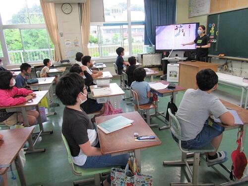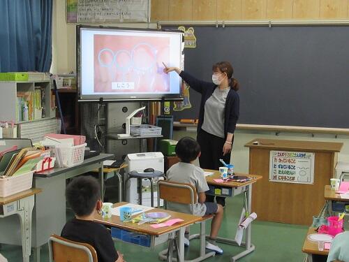 3時間目に、養護教諭の福田先生が、歯と口の健康指導を2年生に対して行いました。初めに、「どのようにしてむし歯になるのか」などについて学習しました。