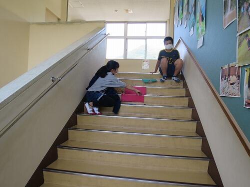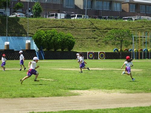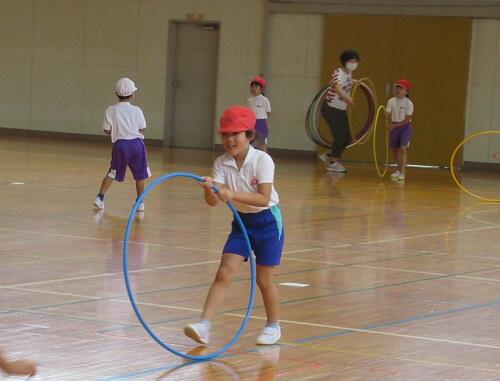1・2年生は、合同で体育の学習をしました。フラフープをバトン代わりにして、フラフープを転がしながら折り返しリレーをしていました。フラフープがまっすぐ転がらず、四苦八苦している児童もいました。楽しそうに活動していました。