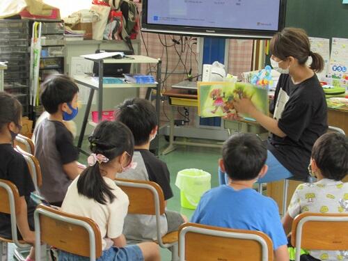 担任の先生が選んだ本の読み聞かせを楽しそうに聞いていました。