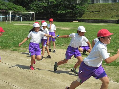 5時間目に、4年生がリレーの練習をしていました。みんな一生懸命走ったり、応援したりしていました。暑かったので、水分補給をこまめにしながらリレーに取り組みました。