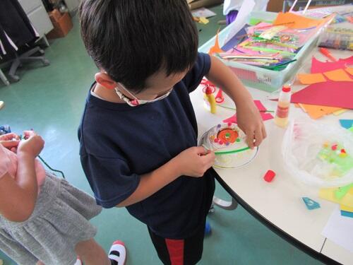 5時間目に、1年生は「オリジナルのかたつむりをつくろう」というめあてで図工に取り組んでいました。いろいろなアクセサリーを使って個性豊かな作品をつくっていました。今日は、かたつむりの殻のパーツが完成したので、次回はかたつむりに組み立てていきます。