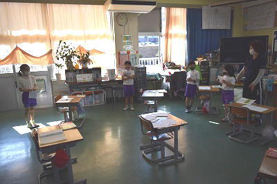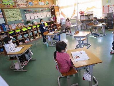 はじめの会の様子です。来年度入学する子ども達の紹介もあり、一緒に参加しました。