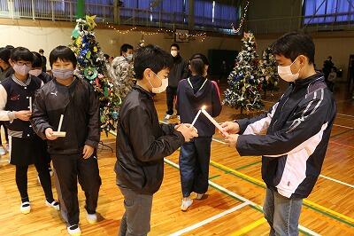 6年生は下級生のろうそくに分火します。