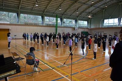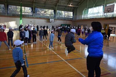 はじめに、まえ跳びや二重跳び、あや跳びなど、自分が頑張っている跳び方を練習しました。その後、学級ごとに長なわをしました。3分間、時間を計って、とんだ回数を数えました。学年が上がると、200回以上とんだ学級もありました。寒い朝でしたが、なわとびをして、あたたまりました。
