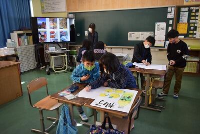 4年生が、青雲の時間(総合的な学習の時間)に、日之影町の特産品について調べたことを発表会へ向けてまとめる活動をしていました。