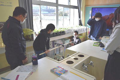 3年生は、電気を通すものを実験で調べていました。鉛筆やふでばこ、1円玉など、様々なものが電気を通すか確かめていました。
