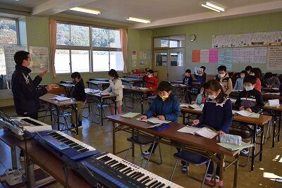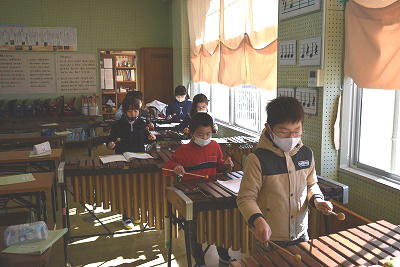 2年生は音楽の時間に「汽車は走る」を演奏していました。はじめに階名を確認して、それぞれの楽器で演奏を始めました。汽車が走る様子を表すために、速さを変えて演奏していました。みんなとても上手に演奏していました。
