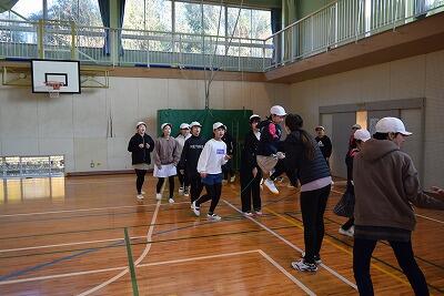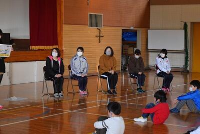 はじめに、体育委員会の児童が運動の仕方を説明しました。その後、体をやわらかくするコーナー、立ち幅とびコーナー、スポンジロケットコーナーに分かれて、運動しました。
