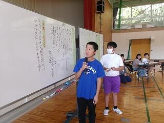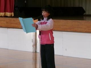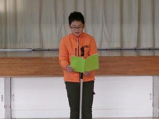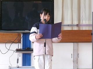 6年生が代表で発表しました。作文の内容は「学校だより」のコーナーの第43号に掲載します。