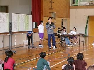 運営委員会の提案で全校児童で話合いを行いました。議題「落ち着いた宮水小学校にするために、みんなでどんなことに取り組んだらよいか」をテーマに柱に沿って話し合いました。大変活発な意見が出され、これから実践していくことを具体的に決めました。最後に運営委員会から、「ボランティア活動」について呼びかけがありました。どのように受けとめどのように実行していくか、一人一人考え実行してほしいです。