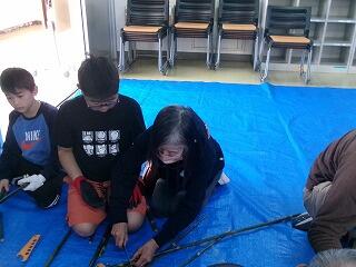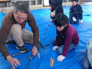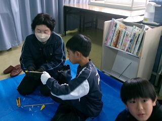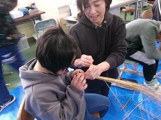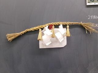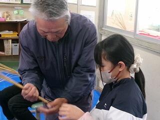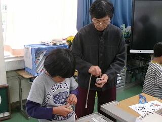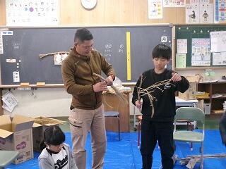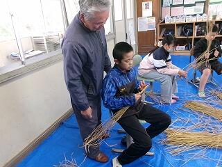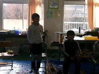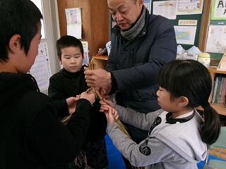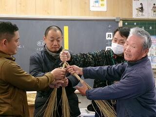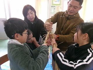 5年生が生産活動の栽培の後のわらを使って、2学期終わりにしめなわを作りました。御指導いただいた方々ありがとうございました。