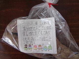 参加者の皆様には、学校で育てたへちまのたわしと種、さつまいもを御土産にお渡ししました。本年度も御協力いただきありがとうござました。