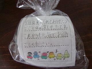 最後に御土産のプレゼントを渡したら保育園生からも御返しがきました。とてもうれしそうでした。ありがとうございました。