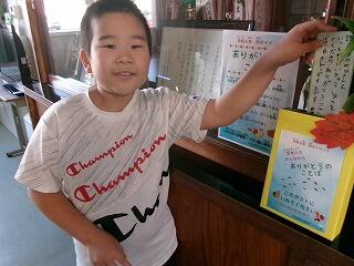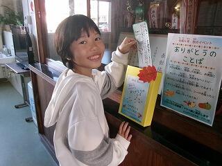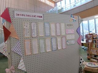 町図書館が募集した「ありがとうの言葉」に全校児童で応募しました。先生たちも出しました。校長室まで提出に来てくれた様子も紹介します。町図書館ブラリ館に心のこもったたくさんの「ありがとう」が展示されています。
