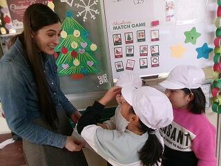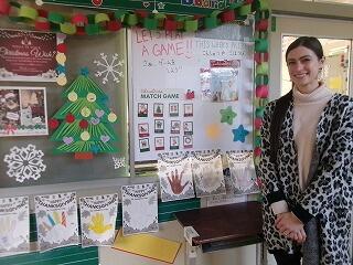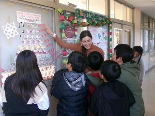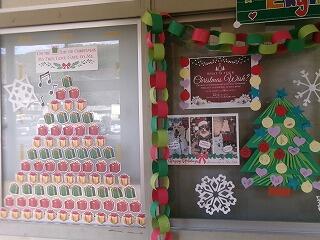 ALTの先生が時期やイベントに合わせて掲示しています。クイズが書いてあるので休み時間に挑戦する子どもたちもたくさんいます。