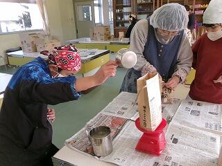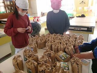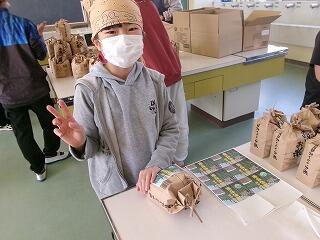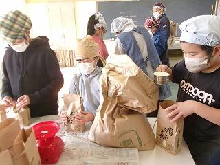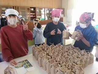 5年生が生産活動で収穫したもち米を計量して袋につめ、ラベルをはり、手作りのシールをはりました。青雲朝市で販売しました。完売できました。御協力いただいた皆様、ありがとうございました。