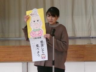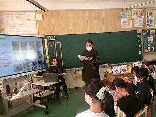 出産のため休まれていた先生の代わりに、令和5年4月から今月まで勤務していただいた保健室の先生に全校児童から御礼を伝えました。これからも宮水小学校のことを見守っていてください。先生の御健康と御多幸を心からお祈り申し上げます。本当にありがとうございました。